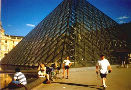 A to oczywi¶cie przy Luwrze. Ten malutki człowieczek obok rowerów - to ja.