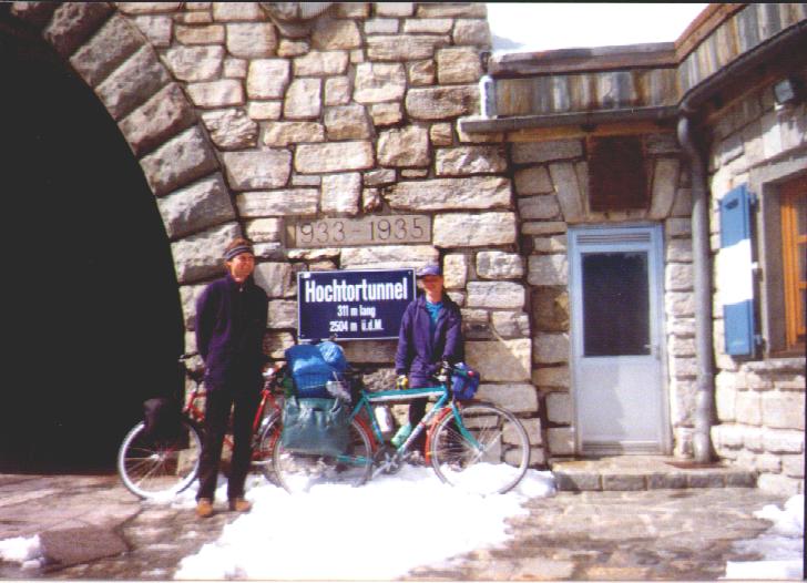 | No a tutaj razem z Robertem. Razem osiągnęliśmy ten sukces - wjechaliśmy na wysokość 2504 m npm. RUP Poznań Województwo Team (zainteresowani wiedzą o co chodzi) Jednocześnie dziękujemy naszemu głównemu sponsorowi za opakowania foliowe i odzież sportową ;-)))))) (jak wyżej) A zwróć uwagę jakie wielkie sakwy mamy przy rowerach ;-))) |